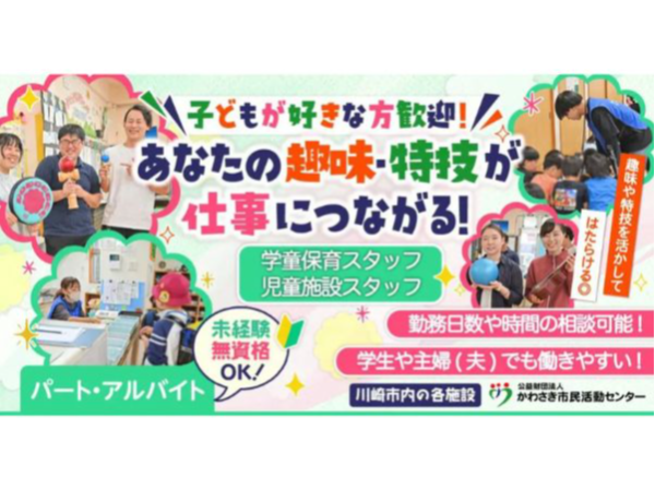 【公益財団法人かわさき市民活動センター】無資格未経験OK◎学童保育スタッフ・児童館スタッフ《臨時職員(アルバイト・パート)》の募集【川崎市内各施設の求人】