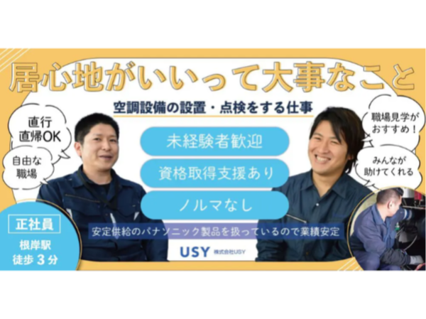 【株式会社USY】空調設備の点検・設置作業スタッフ|《正社員》募集!【横浜市磯子区の求人】