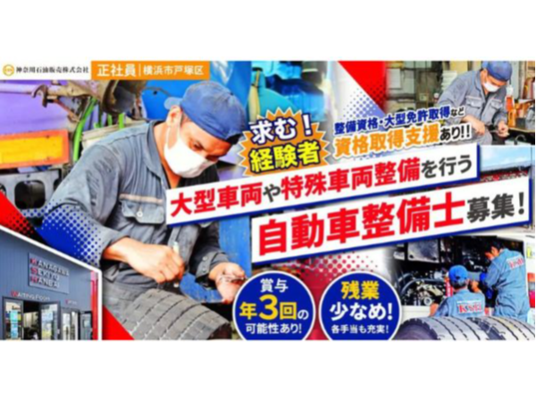 【神奈川石油販売株式会社】経験者募集◎商業車や特殊車両も扱う自動車整備士|《正社員》募集【横浜市の求人】