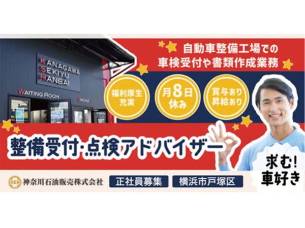 【神奈川石油販売株式会社】整備受付・点検アドバイザー|《正社員》募集【横浜市戸塚区の求人】
