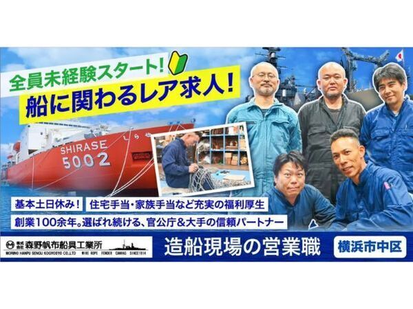 【株式会社森野帆布船具工業所】造船の現場同行あり!営業職|《正社員》募集【横浜市中区の求人】