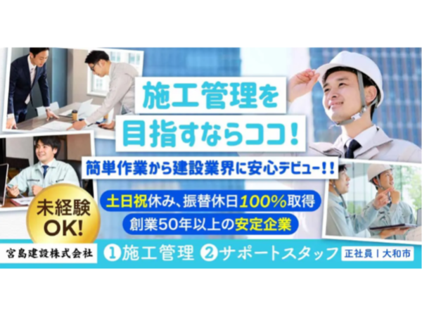 【宮島建設株式会社】施工管理見習い《正社員》の募集【大和市の求人】