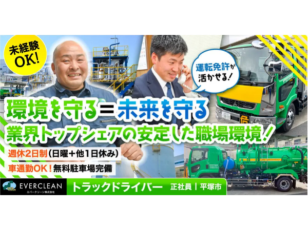 【エバークリーン株式会社】資源回収ドライバー(タンクローリー/平ボディ/バキューム)《正社員》の募集【平塚市の求人】
